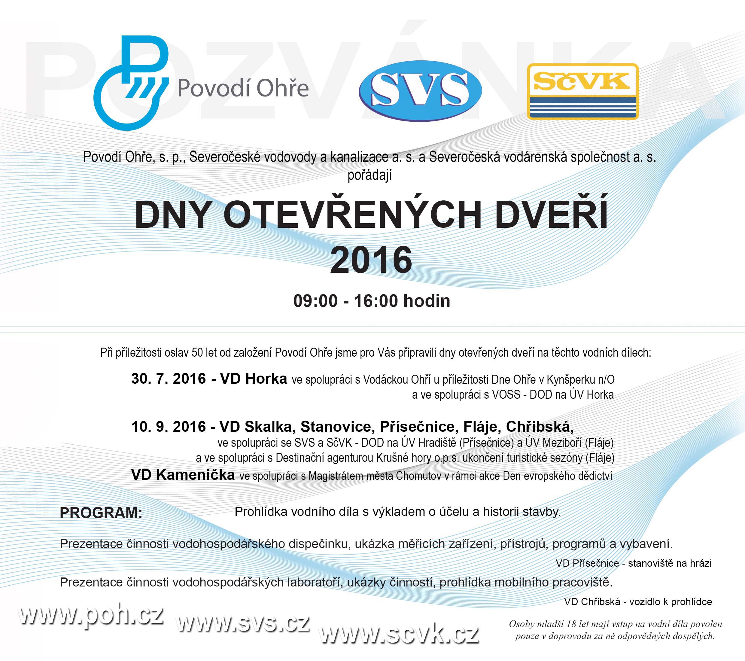 Dokument: Den otevřených dveří Povodí Ohře Soubory ke stažení: dod-2016-poh.jpgpozvanka-dod-2016.jpg Vyvěšeno: 25.07.2016 Sejmuto: 11.09.2016 Popis (anotace):